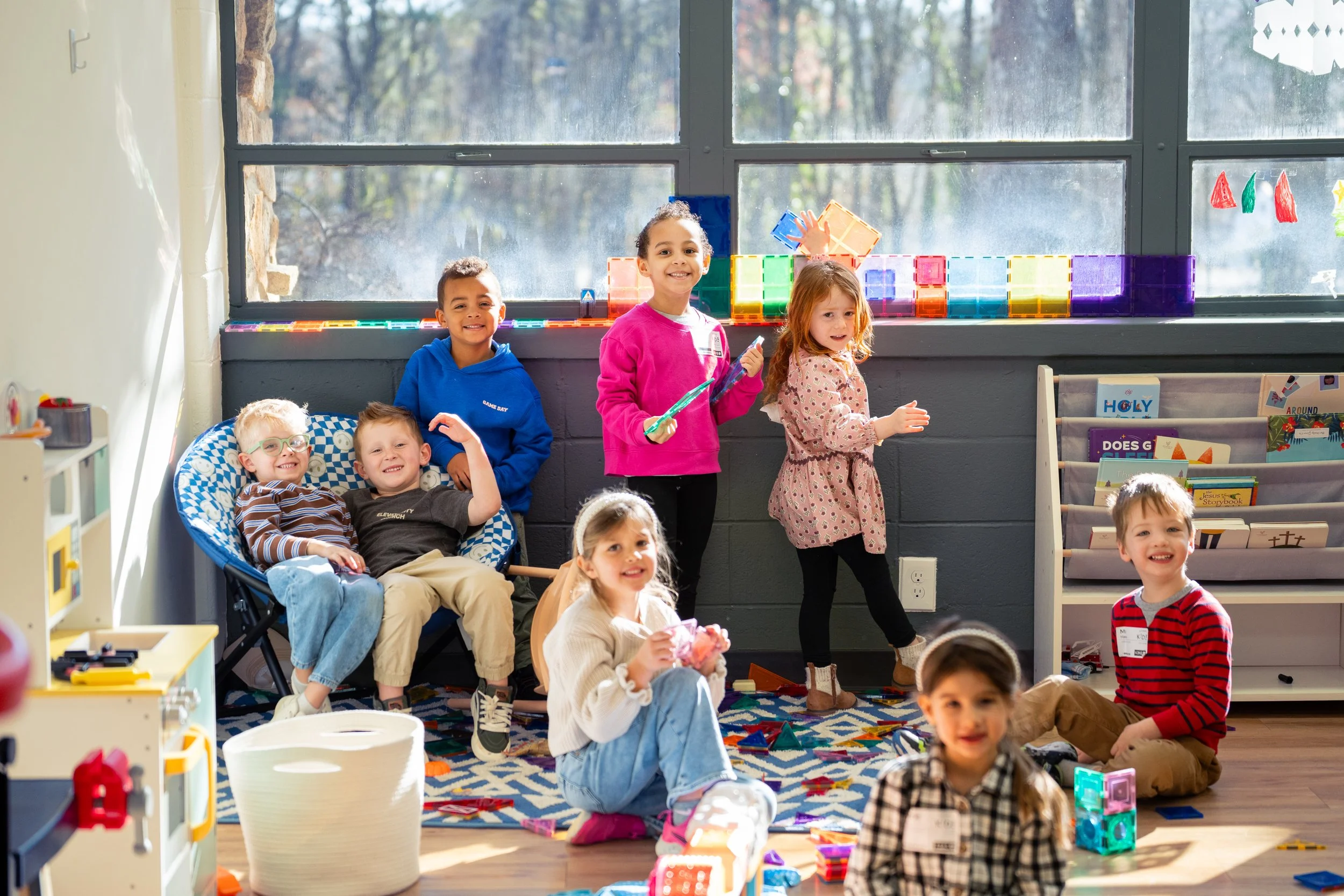 Our preschool - kindergarten environments exist to connect with children ages 3-6 and introduce them to the adventure of following Jesus. To accomplish this goal we engage every child in a circle time that includes a Bible story, singing songs, games, crafts and fun activities.